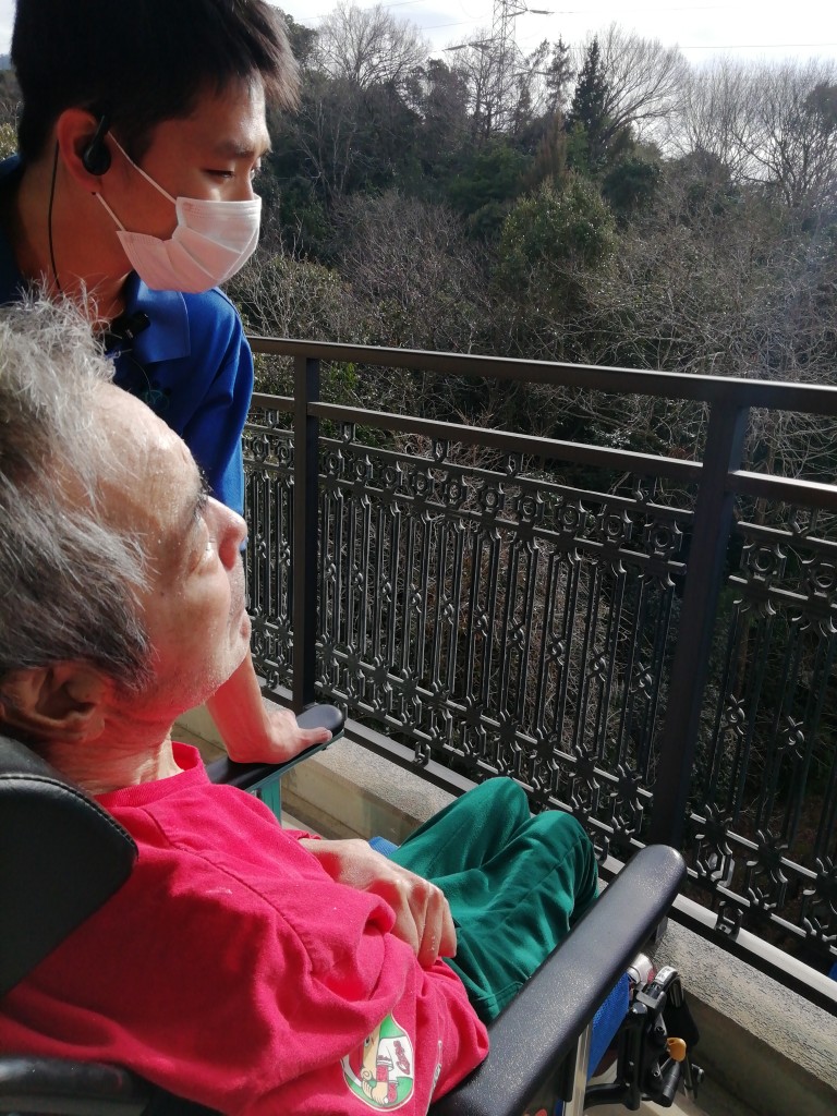 今日は、ひな人形を見たり、ベランダに出て外の空気を感じたりして、過ごされました。 -