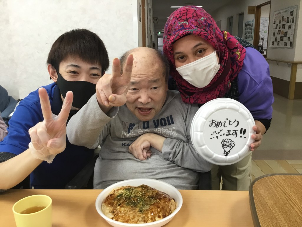 本日も1日お疲れ様でした。 今日は利用者A様のお誕生日でした。 職員、利用者様にてお祝いさせて頂きました。 「嬉しいです。ありがとう。」と話され我々職員も嬉しかったです。 明日も元気に過ごしましょう。 -