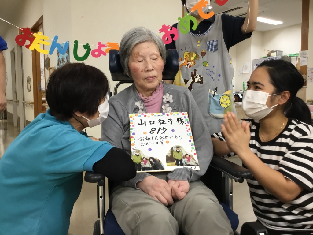 本日は体操の時間に参加され皆さん楽しそうに体を動かされてました。 お誕生日の方もおられて色紙をお渡ししてお祝いをさせて頂きました。 皆さんお変わりなく過ごされました。 -