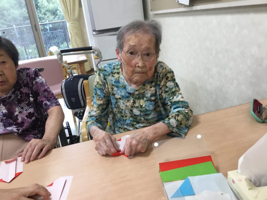 本日はレクリエーション活動として折り紙を折りました。花びらを折っていただきましたが皆様とてもお上手です。 私達職員より利用者様達の方が折るのが上でした。本日もお変わりなく過ごされました。 -