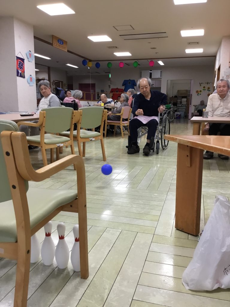 おはようございます! 今日はボーリングレクリエーションをしました 「楽しい」や「まっすぐ行かんよ」と皆様笑顔でされていました。 今日は雨でしたが、皆様の笑顔溢れる明るい一日でした。