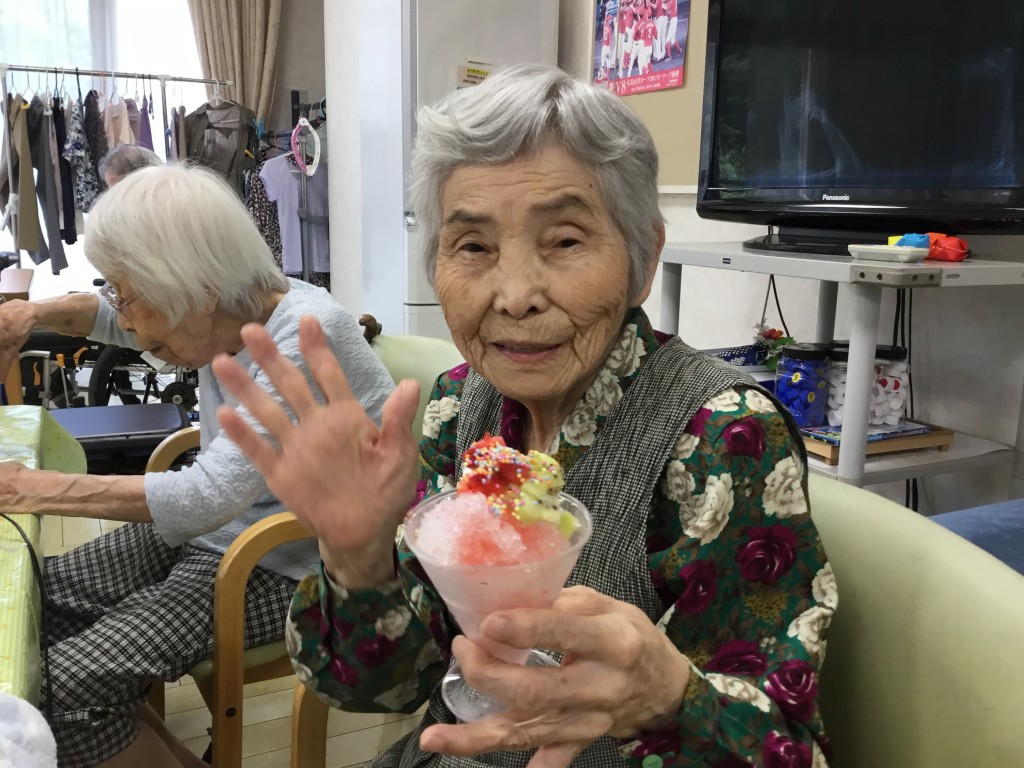 午前はフロアや居室にてゆっくり過ごされておられます。足の運動で廊下を自走される方もいらっしゃいました。 午後よりフロア企画として「かき氷づくり」とおこないました。皆様、とても真剣な表情で作っておられます。 美味しそうなかき氷ができました。... -
