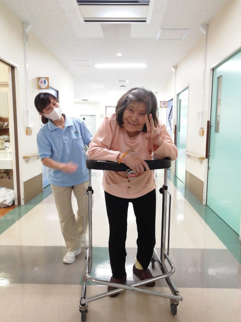 本日の3階もカメラに向かってピースしてくださったり、歩行練習を頑張られておりました! 暑い日が続きますが、水分をしっかりとっていきましょうね! -