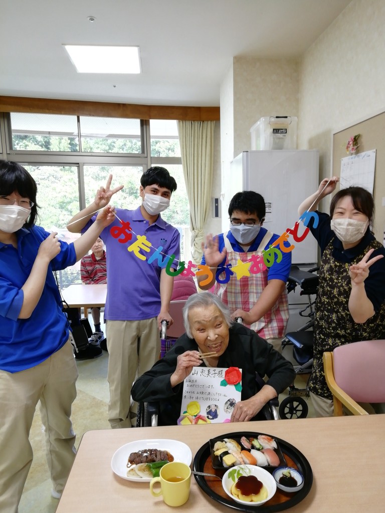 本日、誕生日の方のお祝いや、風船バレーをして身体を動かされました。 -