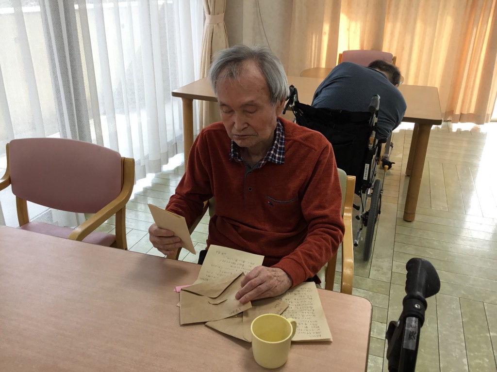 本日はご家族様からの手紙を、いただきました。 真剣に読まれる利用者様や、 お手紙と、お芋を頂きまして、カメラを準備している間に、すでに食べておられ、撮影できず、申し訳ございません。 ボール蹴りをしてくださってます。 なごみの郷にある本... -