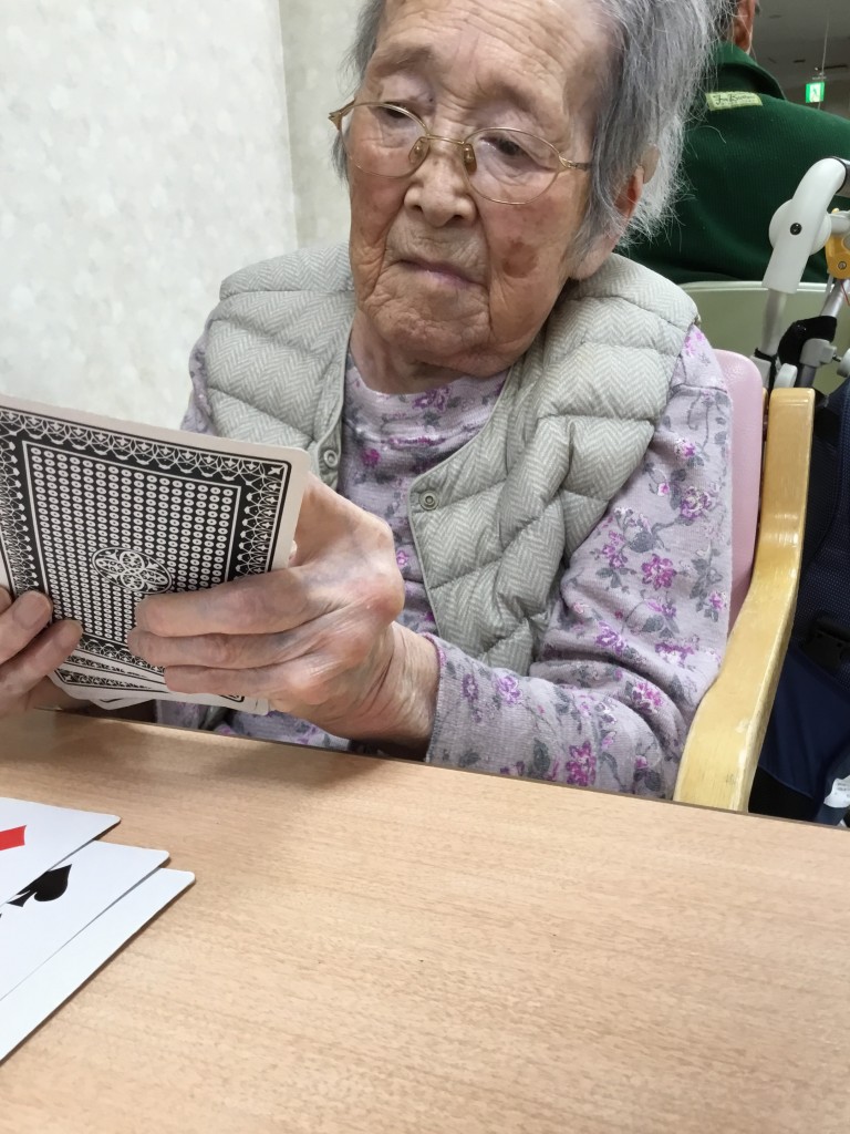 昨日もトランプを楽しまれましたが、本日もトランプがしたいと言われ数名の方で楽しまれました。本日も皆さんお変わりなく過ごされました。 -