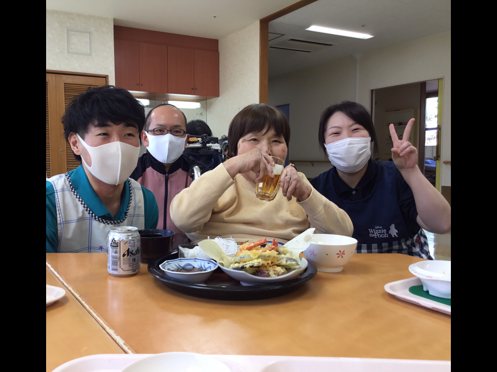 居室にてベッド臥床され過ごされています。職員が声掛けをおこなうとしっかり開眼してくださってます。 フロアにて「美味しい。美味しい」と言われ飲み物を飲まれています。 職員がカメラを向けるとピースサインをしてくださってます。 午後より体操の時間... -