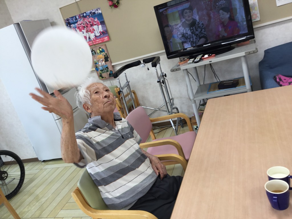 こんにちは。 台風が過ぎ穏やかな日が続いてますね。 5階も穏やかな日が続いております。 午前中:音楽の時間、風船バレー、体操 午後:フロアレクリエーション(大玉バレー) 行いました! 本日も皆様元気に過ごしていらっしゃいました! -