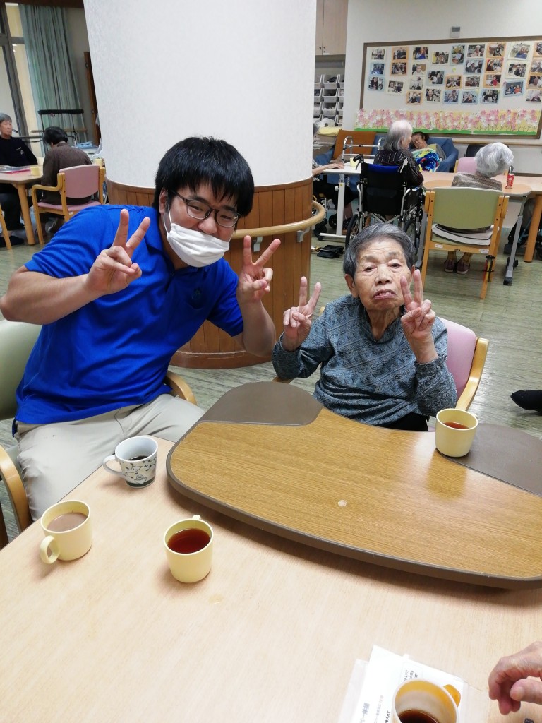 歩行練習を頑張っておられました。 持ってきてくださったチョコレートを食べられました。 女子会も行いました。 本日のレクリエーションは、ボール遊び、頭突きをされる利用者様もおられ、笑顔が溢れました。 実習生とカルタをされたり、エプロンを畳んで...