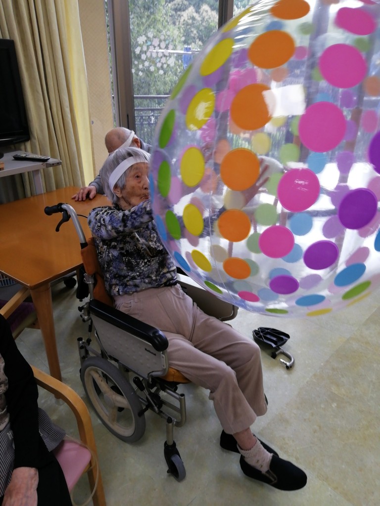 風船バレーをされたり、カラオケに参加されたりし お過ごしになられました。 -