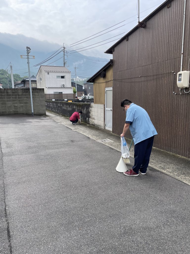 以前行っていた地域清掃を再開しました。 毎日地域の美化活動に取り組んでいます。 -