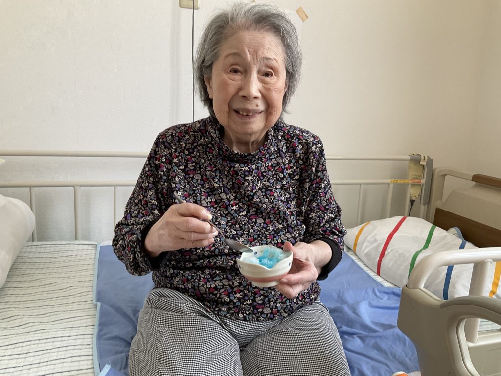 本日もとても暑い一日でしたね。 本日は、ブルーハワイのかき氷を皆で食べました。 「暑い日にはやっぱり冷たい物がええですね。」と皆様大変喜ばれていました。 また、冷たい物を食べたいですね。明日も、元気に過ごしていきましょう。 -