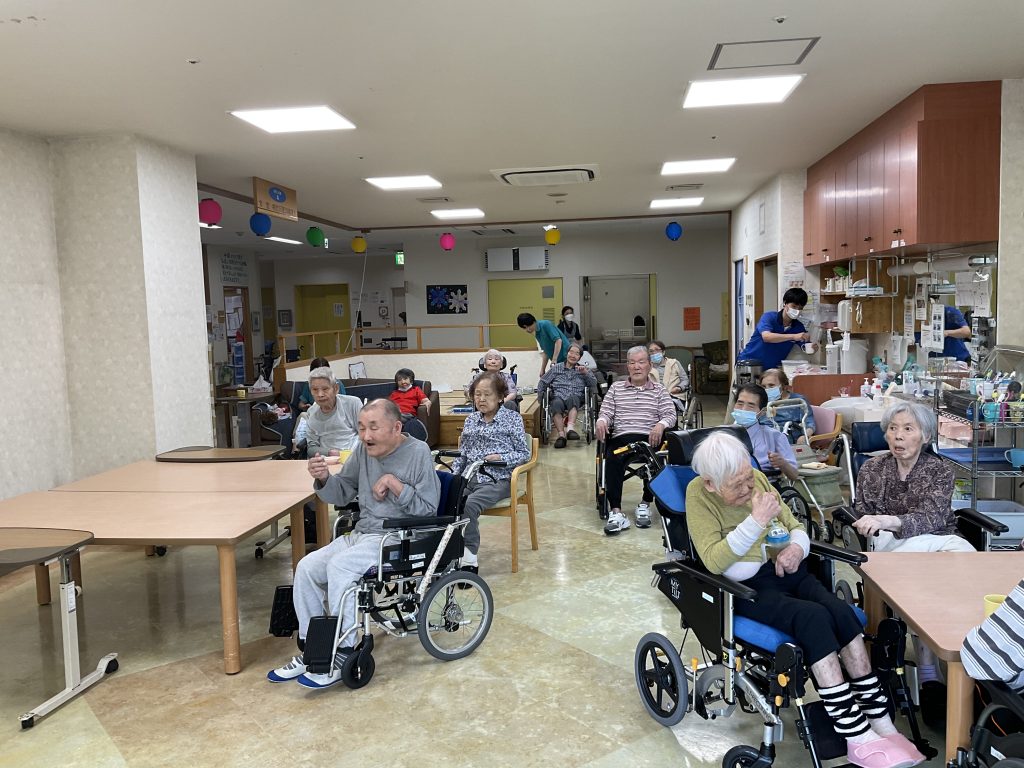 本日も蒸し暑い1日となりましたが、皆様お変わりなく過ごされてました。 明日は3階での夏祭りを行います。年に一度のお祭りを楽しんでいただけるよう準備をしております。
