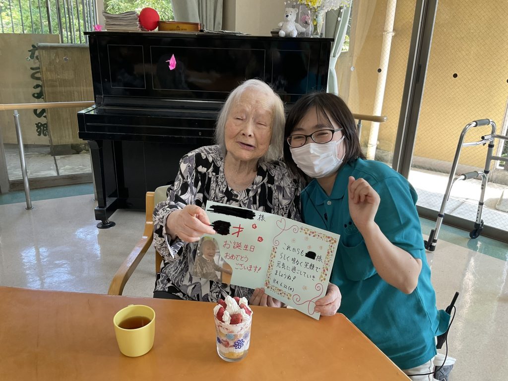 本日は⚪︎様のお誕生日でした!苺のパフェを作ってお祝いしました。 本日も皆様お変わりなく過ごされました。 明日も元気に過ごしていきましょう。 -