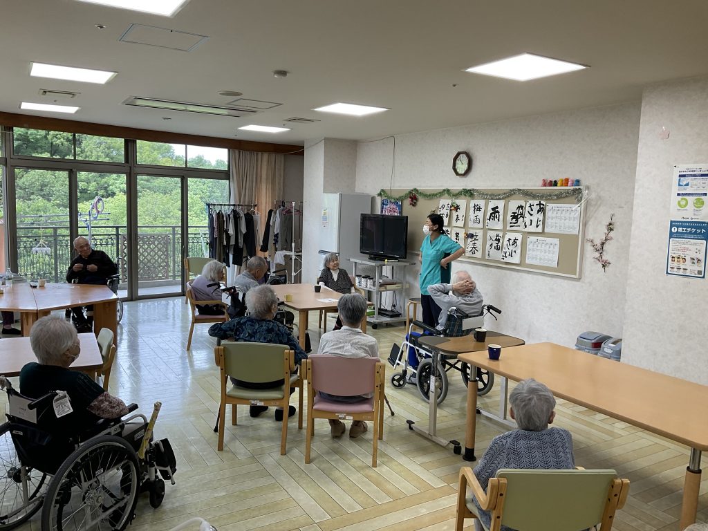 本日もいいお天気ですね。 今日は午後から、体操の時間がありました。 皆様参加されしっかりと体を動かされておりました。 皆様本日も体調お変わりなく過ごされています。