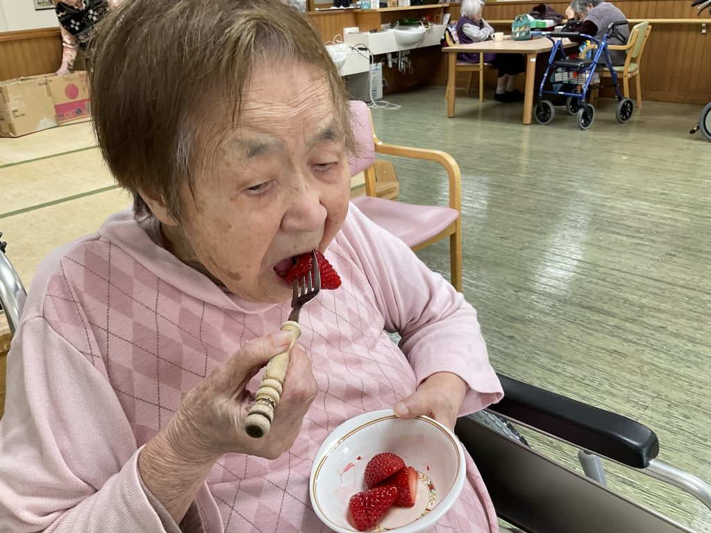 本日もリハビリをされたり、家族様差し入れのイチゴを食べられました。 今日も一日笑顔の多い1日でした。 -