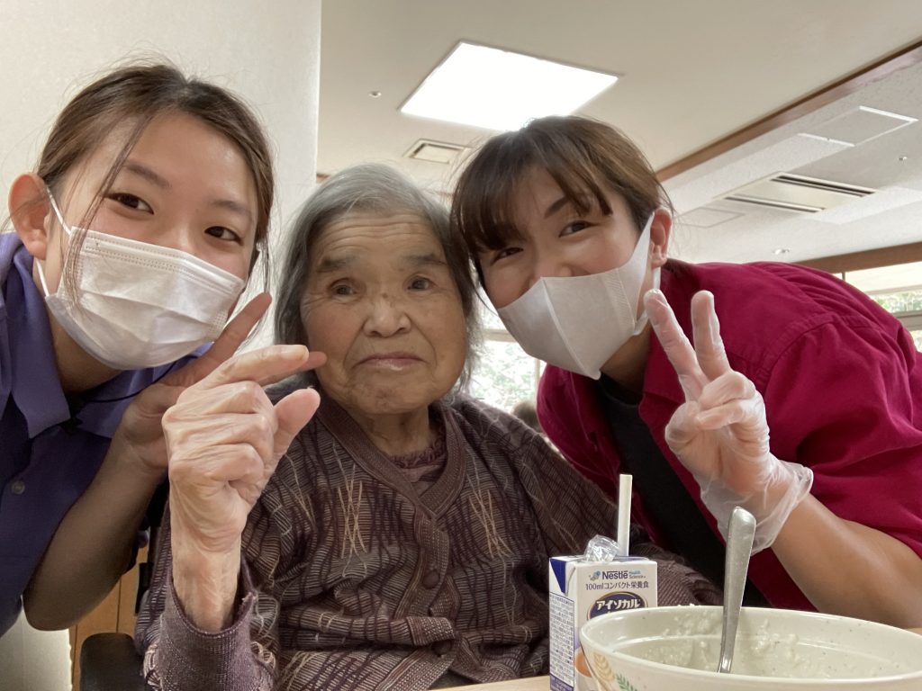 本日の3階です。職員と一緒に写真に映ってくださいました。 パズルをされたり、塗り絵をされたり、 散歩に行かれたりと穏やかな1日でした。 -