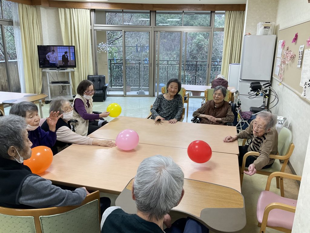 本日のレクリエーションは風船バレーを行いました。皆様お変わりなく過ごされました。 -