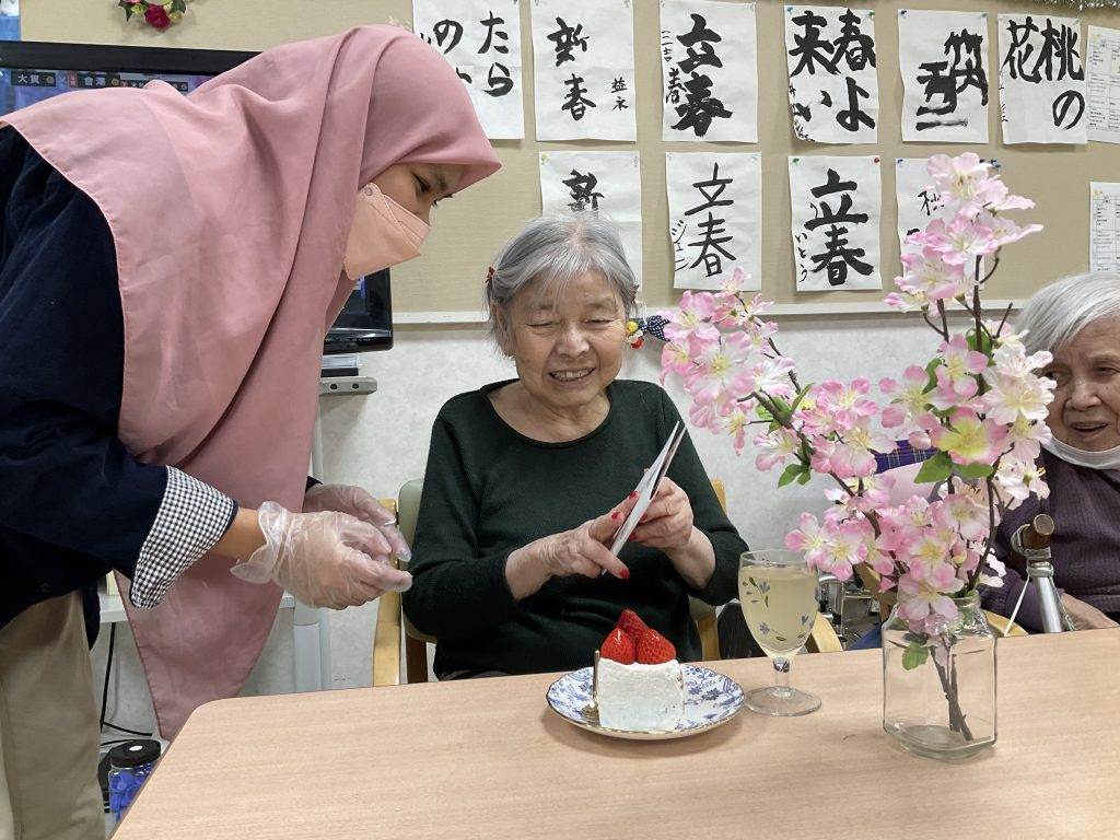 こんにちは!本日5階ではお誕生日を迎えられた方のお祝いをさせて頂きました。 職員からはケーキをお出しし、美味しいと笑顔で言われていました。 家族様から服やお手紙を貰い大変喜ばれておりました、今年も良い歳にしましょうね^_^ -