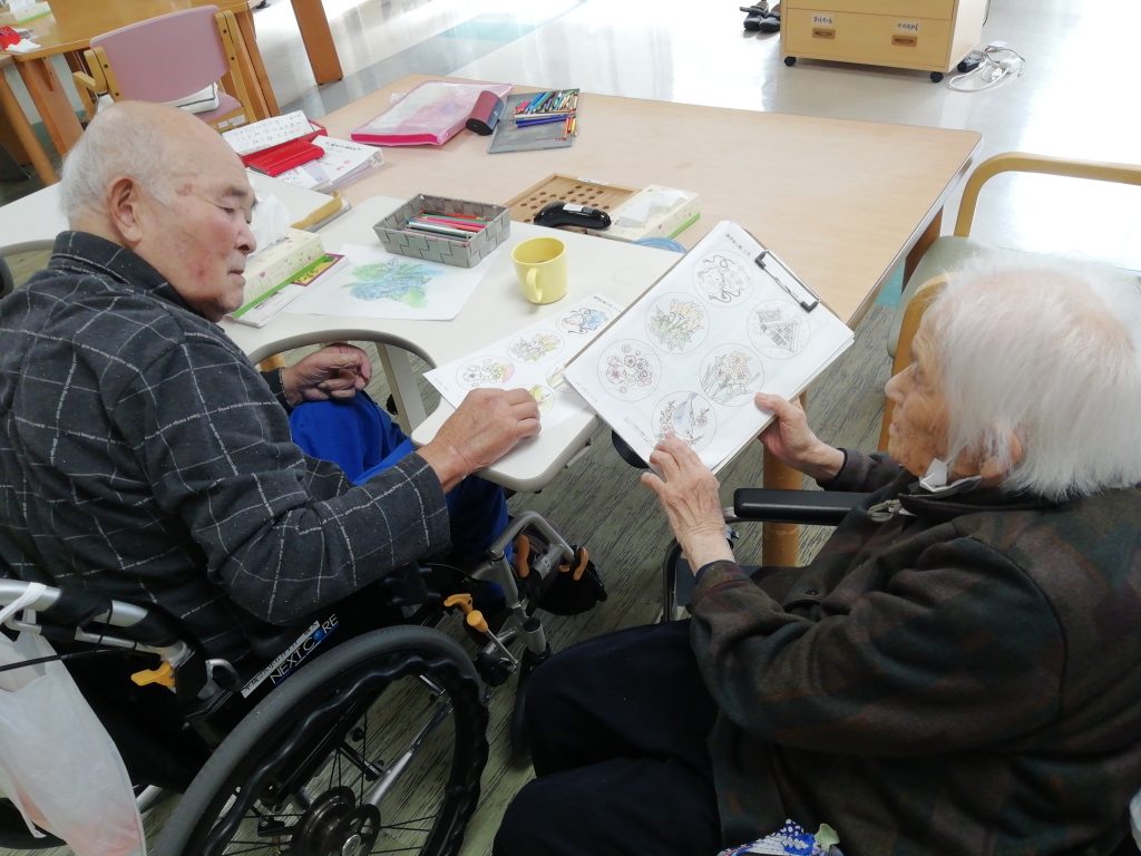 本日も、皆様、楽しく食事をされたり、色塗りをされたり、元気良く過ごされています。 また、たくさんの、皆様の笑顔を見ることができ、職員一同も、元気を頂いております!また、ドライブなどに行けたら良いですね。 それでは、また、明日! -