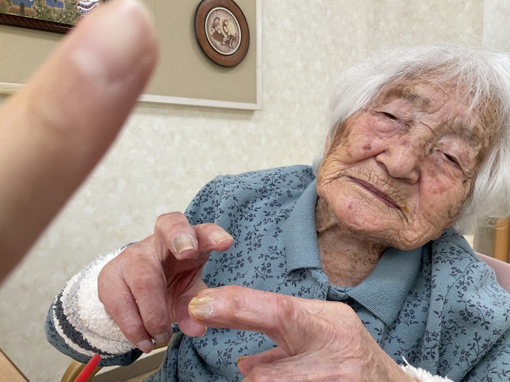 午後より手のリハビリをされました。 お変わりなく過ごされています。