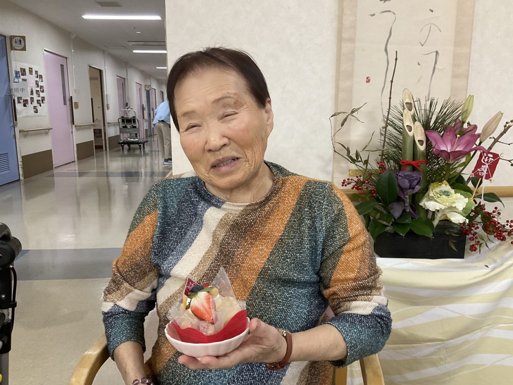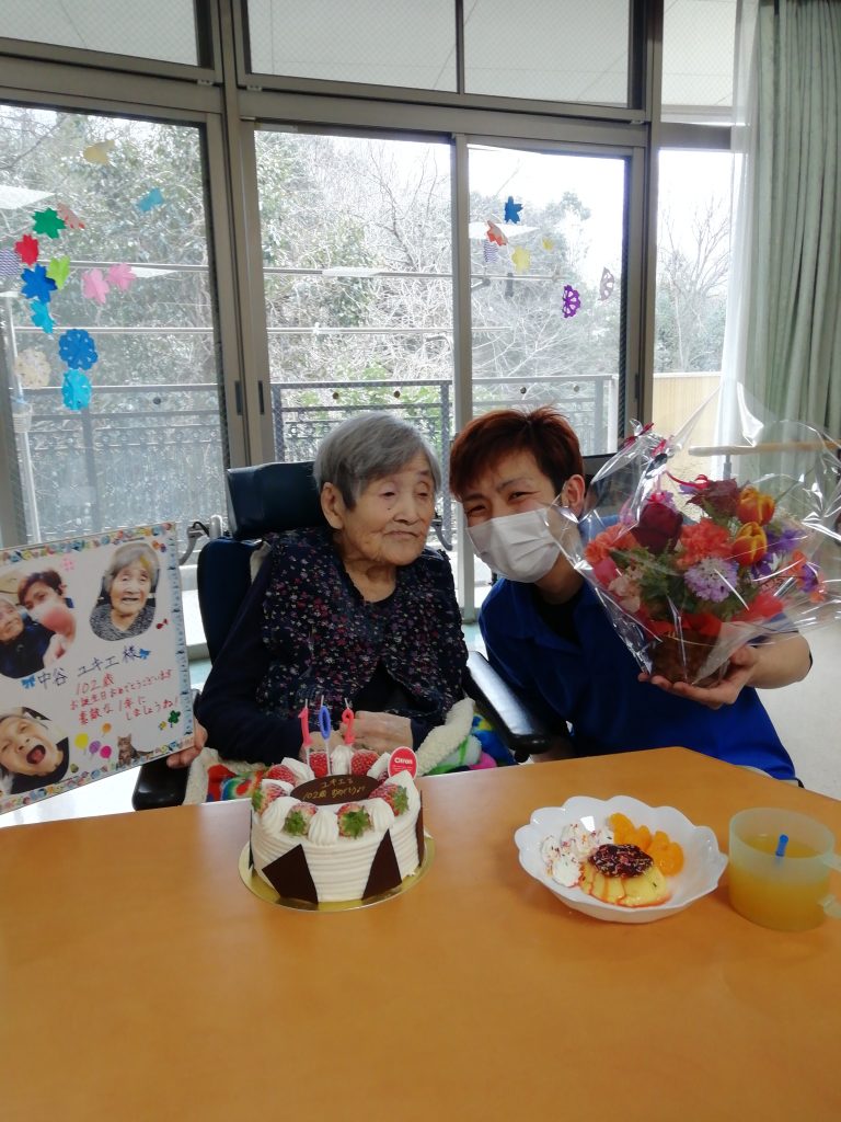 1日お疲れ様でした! 皆様のんびりと過ごされました! 本日は、102歳の誕生日を迎えられた方がいらっしゃいましたので、職員と利用者様でお祝いしました。ケーキを大変喜んで食べられていました。 今年も元気に過ごしていきましょうね! -