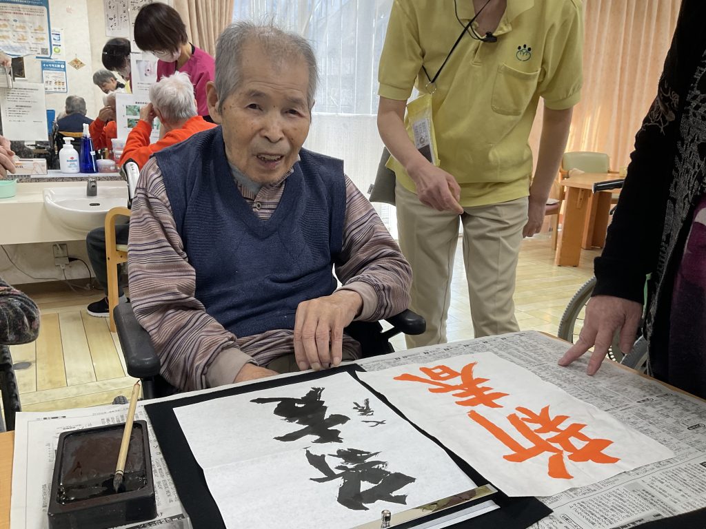 午前中は屋上で散歩されたり、午後からは書初めをされ、お正月を感じていただいてます -