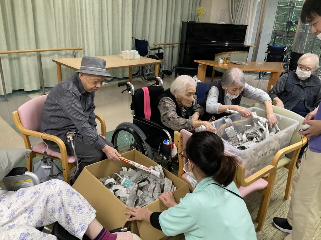 皆様こんにちは。本日の3階は一足早く七夕祭りを行いました。この暑い季節にピッタリなクラッシュゼリーを作りました。皆様ゼリーを真剣に砕いてくださいました。 食べていただいた際には、「冷たいね。美味しい。」と言っていただきました。 短冊... -
