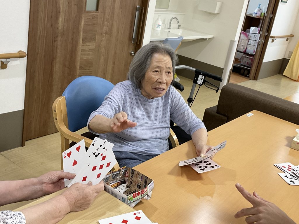 本日は、午後からトランプでババ抜きを行いました。 皆様、真剣に「どれにしようかね?」とトランプを選ばれ楽しまれていました。 また、趣味の工作をされたりと個人で余暇の時間を楽しまれている方もいらっしゃいました。 立秋も過ぎました... -