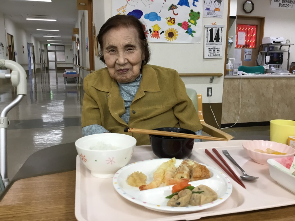 本日は月に一度のごちそうの日でした。ごちそうを食べる皆様の笑顔も素敵でした。 -