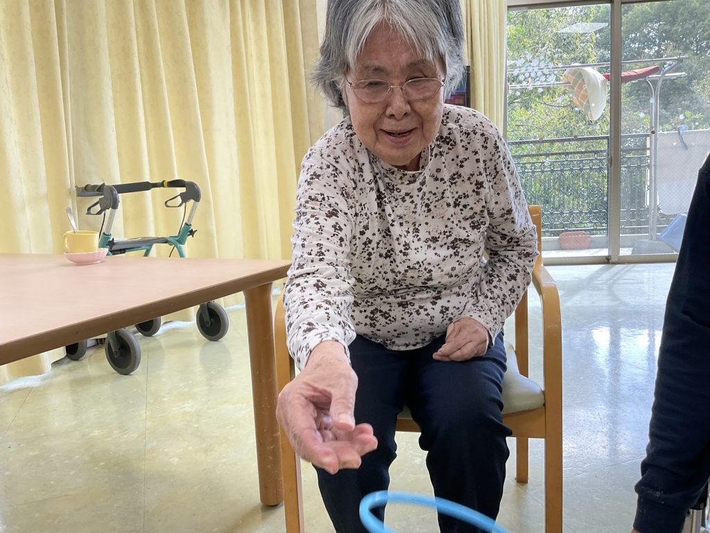今日は天気がとても良いです。 皆様楽しそうに輪投げをされていました!! -