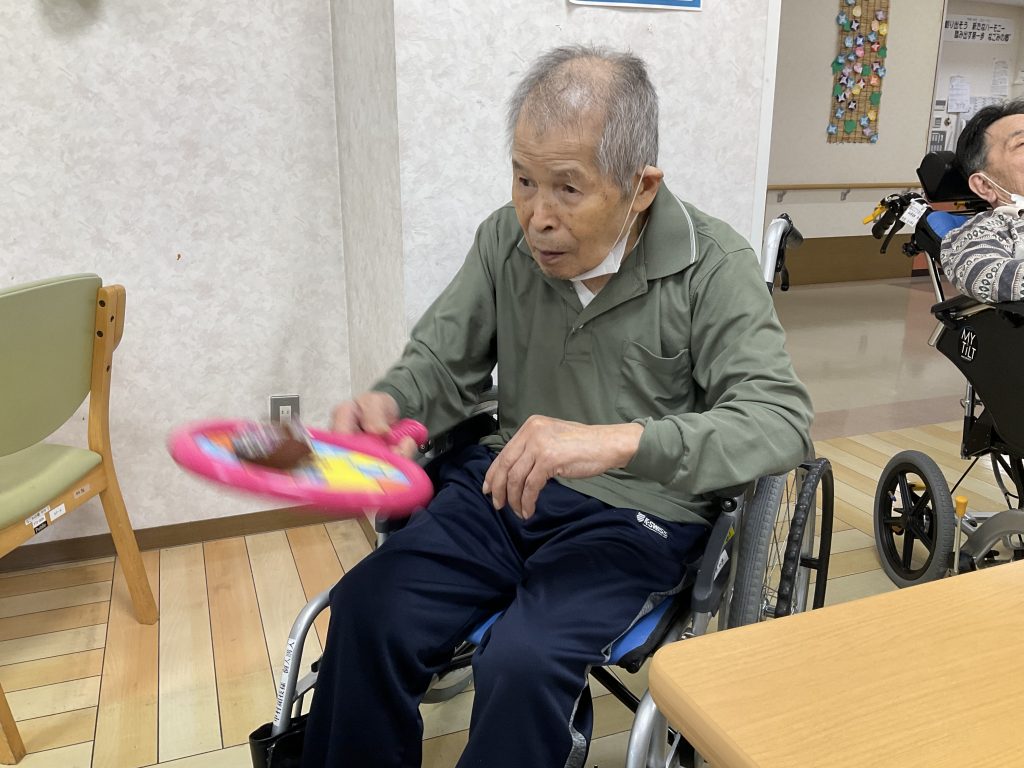 今日はラケットとお手玉を使ったバドミントンをしました。皆様楽しまれていました。 -