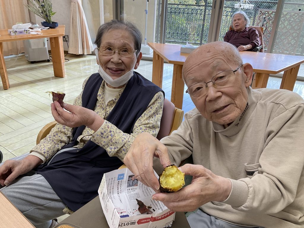本日は焼き芋大会でした。皆様笑顔で美味しいねと言われました。