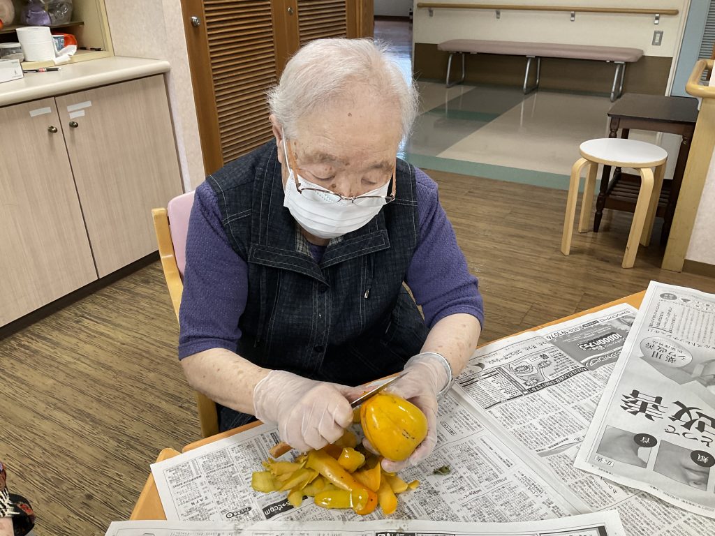 本日も、皆様元気に過ごされました。 カメラへ沢山の笑顔を見せていただきました。また、午後より干し柿の皮剥きを行いました。参加された皆様集中されていました。明日も、元気良く過ごしていきましょうね。 それではまた。 -