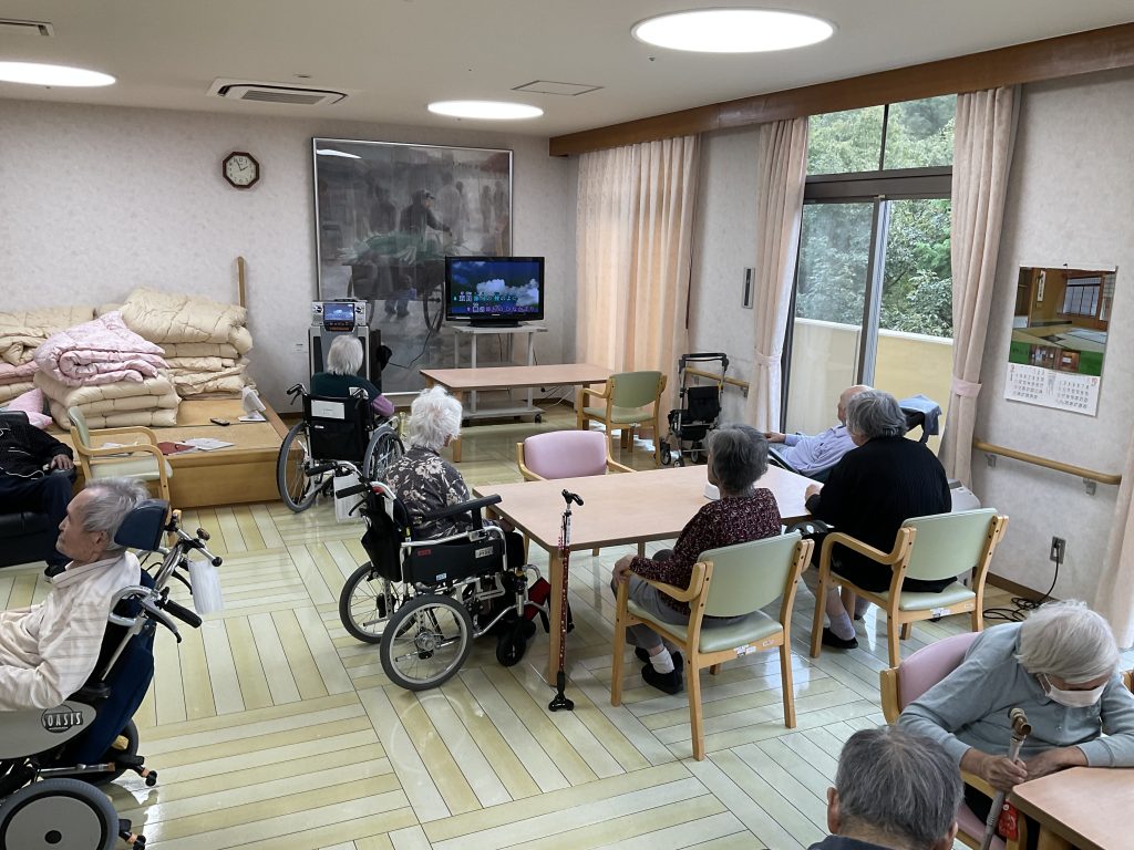 本日はワックスがけがありました。午後からはカラオケを行いました。しっかり声を出され歌われてました。 -